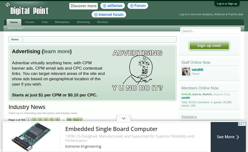 Advertise virtually anything here, with CPM banner ads, CPM email ads and CPC contextual links. You can target relevant areas of the site and show ads based on geographical location of the user if you wish.