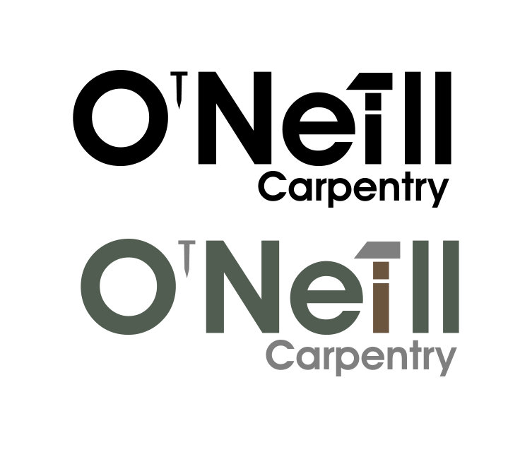Client likes this logo but can we change the "i" in o'neill to just the letter "i" and not the hammer shape and perhaps have the word carpentry stretching across the full width of the word O'Neill and perhaps in a different colour.