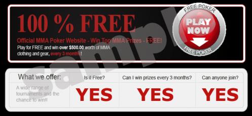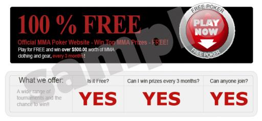 I want something JUST like this: http://i26.tinypic.com/24ytyr6.jpg But change it up a little so its for my site www.WorldMMAPoker.com Insted of the 100% Free Bonus - Text in red, please put: Official MMA Poker Website - Win Top MMA Prizes - FREE! And insted of the smaller text under it put: "Play for FREE and win over $500.00 worth of MMA clothing and gear, every 3 months! Now for that table there, just put something like. What we offer Is it free? Yes I can win Prizes every 3 months? yes Can anyone join? Yes