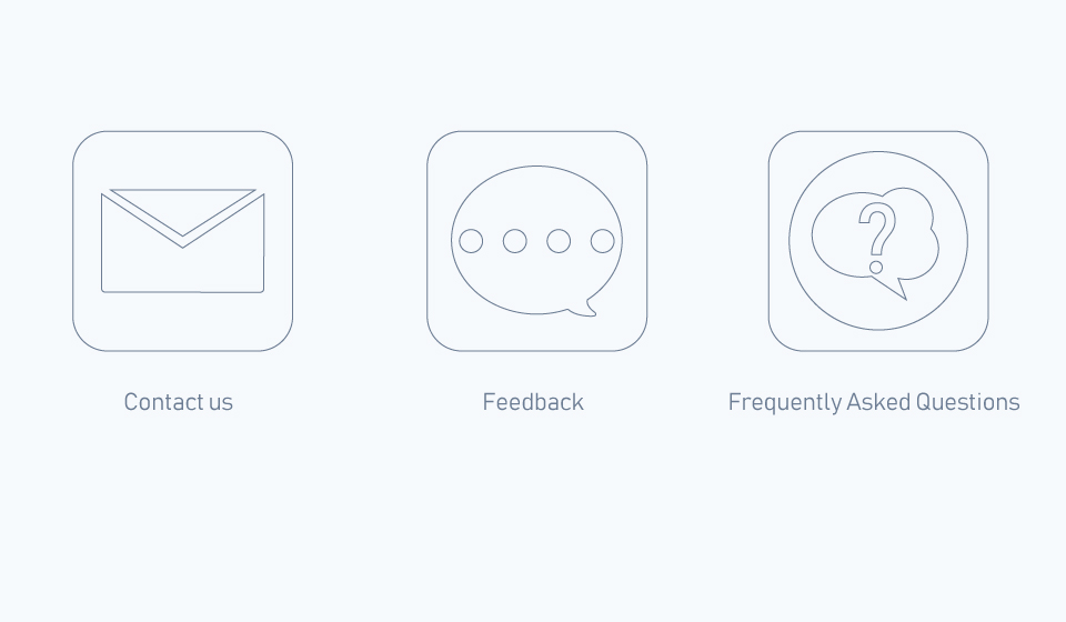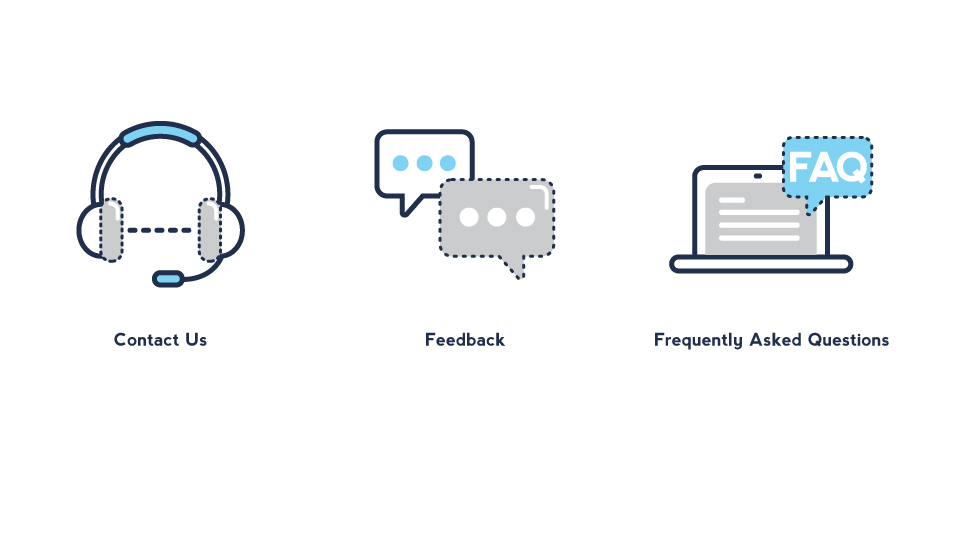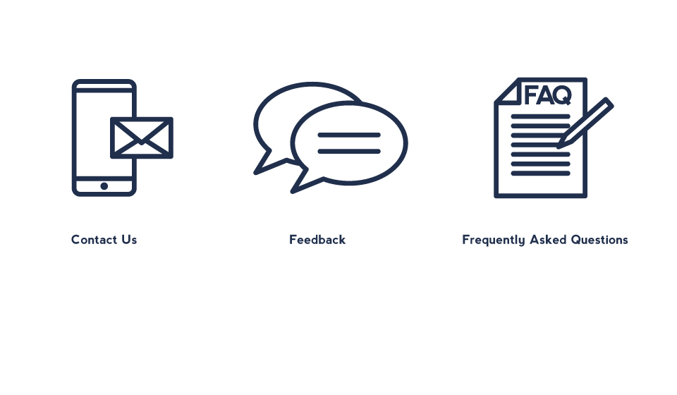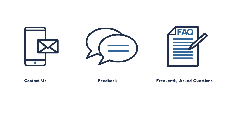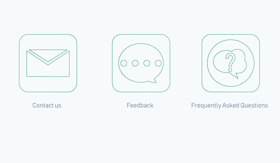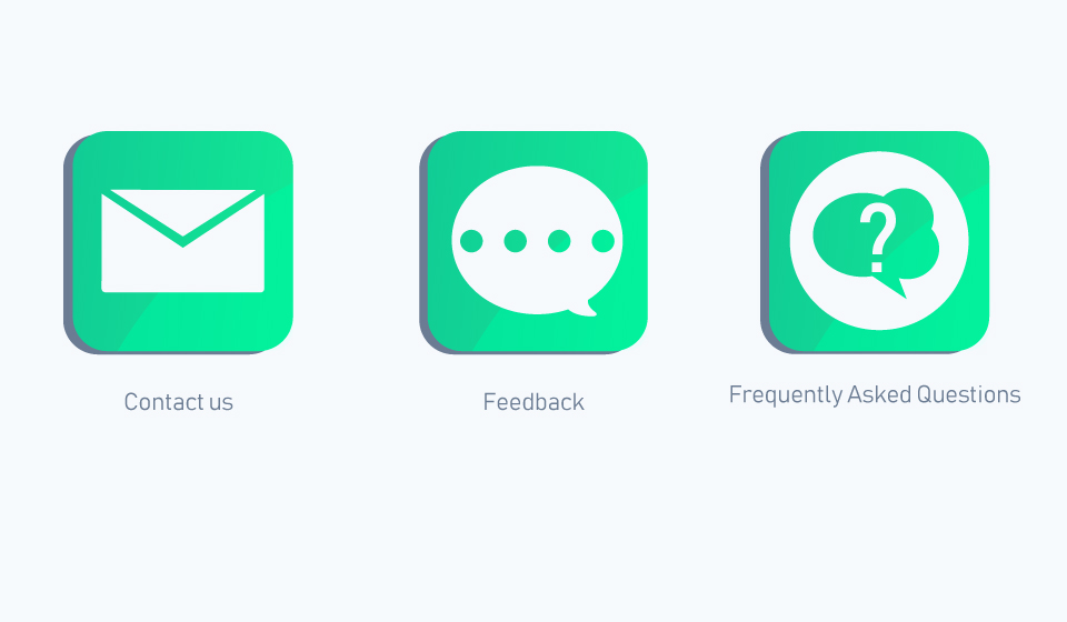 I need the white and green icons replaced with something more professional and representative of the 3 sections 'Feedback', 'Frequently Asked Questions' and 'Contact Us'