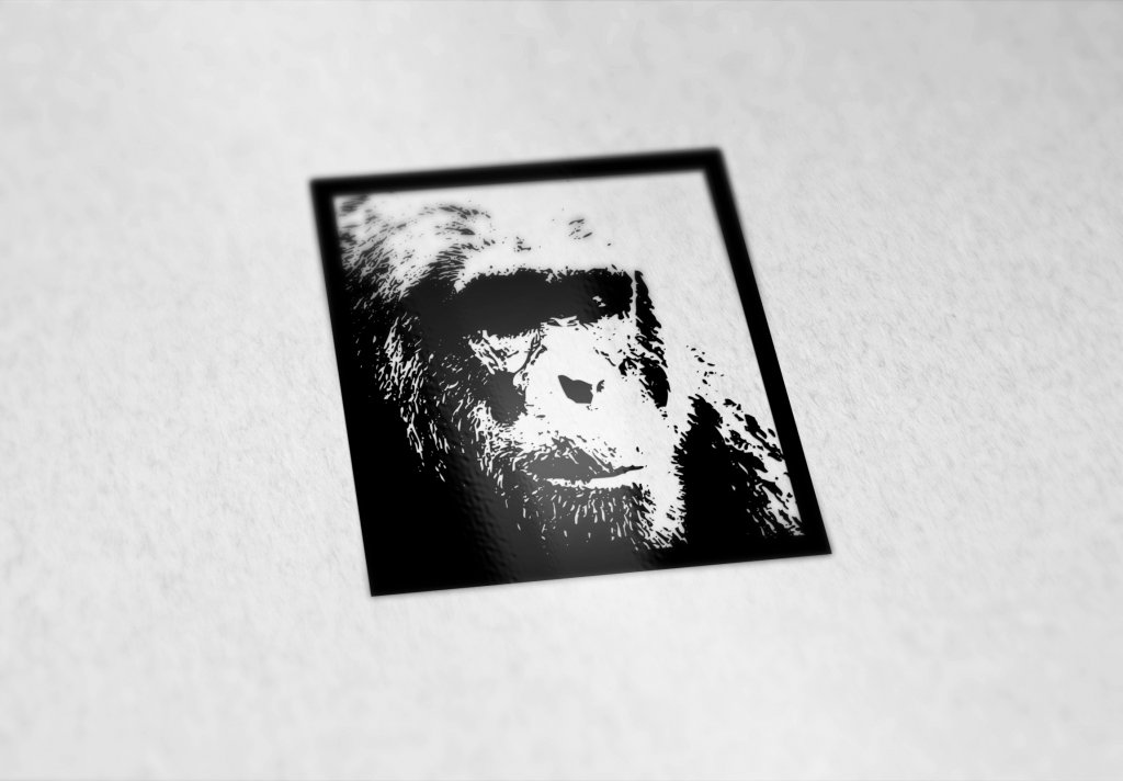 1. We want it can looks like a ape not like a gorilla. 2. Make it looks nature. Do not deliberately showing it is in puffing 3. Logo image can be placed in any place. 4. Want just head. Especialy the face