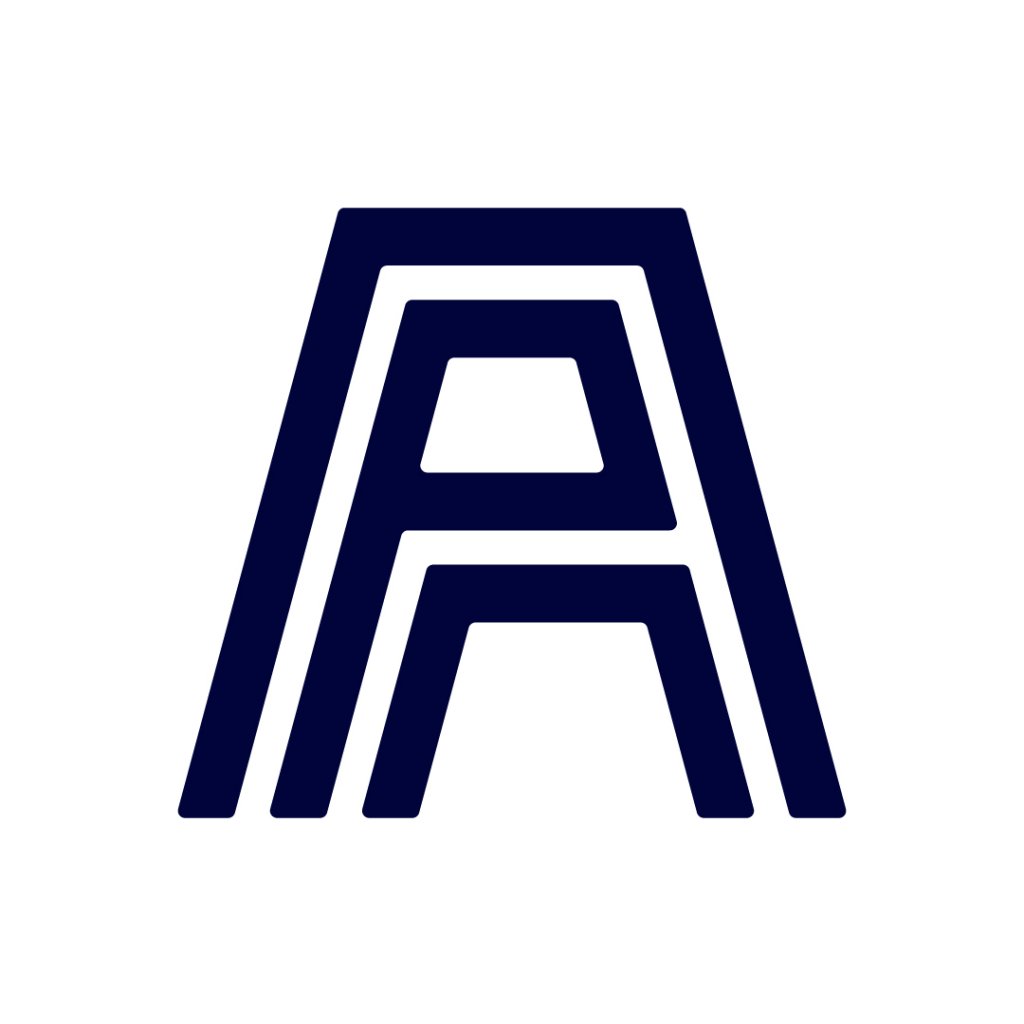Design features an A created in negative space between coding brackets with a P and N in the space under it.