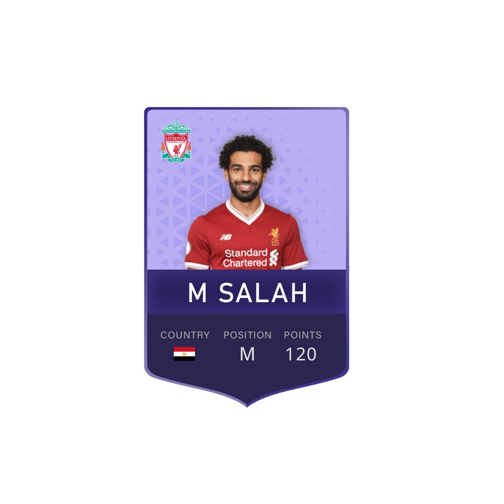 @daniteer - Thanks I am not too keen on the shape of the card, it would be nice for it to have some design to the shape. I prefer the yellow one to the blue one but I am not keen on the gradient behind the name. @getdomain4u - Thanks for your entry, I like the shape of the card, there are a couple of bits of feedback; - I am not too keen on it having the white, red and black borders. - Also the players name will need to be a flat colour as it will actually be added via html. - Could you make the badge and flag smaller so they fit better on the design - Would you be able to move the M above the name somewhere and just have the points below the name. - It would be good to have an icon next to the points to show that's what they are.