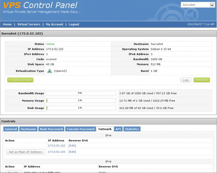 Greetings, I have 6 domain names registered at 1and1.com and a vps with virpus.com. I have two domains pointing to my server ip address. The other 4 redirect to one of the two domains. With virpus i have installed debian 6 32bit, although i can use centos, fedora, ubuntu, arch, gentoo, pbx in a flash, and slackware. Different versions are also available. I have looked all over, and tryed several different ways, and looked more, and tryed even more ways, and i must have reinstalled my server nearly 20 times now trying different different os, and techniques so i knew i have tryed my hardest before comeing here. My question is how to set up my vps so it hosts the files separetly for both domains. Thanks in advanced, -Don Server info: Survuhnt (173.0.52.102) [TABLE="class: grey, width: 900"] [TR] [TD="class: left"]Status[/TD] [TD="width: 389, bgcolor: #FFFFFF"]Online[/TD] [TD="class: left, width: 215, bgcolor: #F5F5F5, align: right"]Hostname[/TD] [TD="width: 391, bgcolor: #FFFFFF"]Survuhnt[/TD] [/TR] [TR] [TD="class: left, bgcolor: #F5F5F5, align: right"]IP Address[/TD] [TD="width: 389, bgcolor: #FFFFFF"]173.0.52.102[/TD] [TD="class: left, width: 215, bgcolor: #F5F5F5, align: right"]Operating System[/TD] [TD="width: 391, bgcolor: #FFFFFF"]Debian 6 32 bit[/TD] [/TR] [TR] [TD="class: left, width: 215, bgcolor: #F5F5F5, align: right"]IPv4 Address[/TD] [TD="width: 389, bgcolor: #FFFFFF"]2[/TD] [TD="class: left, width: 215, bgcolor: #F5F5F5, align: right"]IPv6 Address[/TD] [TD="width: 391, bgcolor: #FFFFFF"]3[/TD] [/TR] [TR] [TD="class: left, width: 215, bgcolor: #F5F5F5, align: right"]Node[/TD] [TD="width: 389, bgcolor: #FFFFFF"]ovzmoir[/TD] [TD="class: left, bgcolor: #F5F5F5, align: right"]Bandwidth[/TD] [TD="width: 391, bgcolor: #FFFFFF"]1000 GB[/TD] [/TR] [TR] [TD="class: left, width: 215, bgcolor: #F5F5F5, align: right"]Disk Space[/TD] [TD="width: 389, bgcolor: #FFFFFF"]40 GB[/TD] [TD="class: left, width: 215, bgcolor: #F5F5F5, align: right"]Memory[/TD] [TD="width: 391, bgcolor: #FFFFFF"]512 MB[/TD] [/TR] [TR] [TD="class: left, width: 215, bgcolor: #F5F5F5, align: right"]Virtualization Type[/TD] [TD="width: 389, bgcolor: #FFFFFF"][TABLE="width: 100%"] [TR] [TD][/TD] [TD](OpenVZ)[/TD] [/TR] [/TABLE] [/TD] [TD="class: left, width: 215, bgcolor: #F5F5F5, align: right"]Burst[/TD] [TD="width: 391, bgcolor: #FFFFFF"]1 GB[/TD] [/TR] [TR] [TD="bgcolor: #FFFFFF, colspan: 4, align: center"][TABLE="width: 100%"] [TR] [TD="align: center"] [/TD] [TD="align: center"] [/TD] [/TR] [/TABLE] [/TD] [/TR] [/TABLE] [TABLE="class: grey, width: 900"] [TR] [TD="class: left"]Bandwidth Usage[/TD] [TD="width: 292, bgcolor: #FFFFFF"]0%[/TD] [TD="class: right, bgcolor: #F5F5F5"]2.87 GB of 1000 GB Used / 997.13 GB Free[/TD] [/TR] [TR] [TD="class: left, bgcolor: #F5F5F5, align: right"]Memory Usage[/TD] [TD="bgcolor: #FFFFFF"]1%[/TD] [TD="class: right, bgcolor: #F5F5F5"]13.71 MB of 1 GB Used / 1010.29 MB Free[/TD] [/TR] [TR] [TD="class: left, bgcolor: #F5F5F5, align: right"]Disk Usage[/TD] [TD="bgcolor: #FFFFFF"]1%[/TD] [TD="class: right, bgcolor: #F5F5F5"]412.68 MB of 40 GB Used / 39.6 GB Free[/TD] [/TR] [/TABLE]