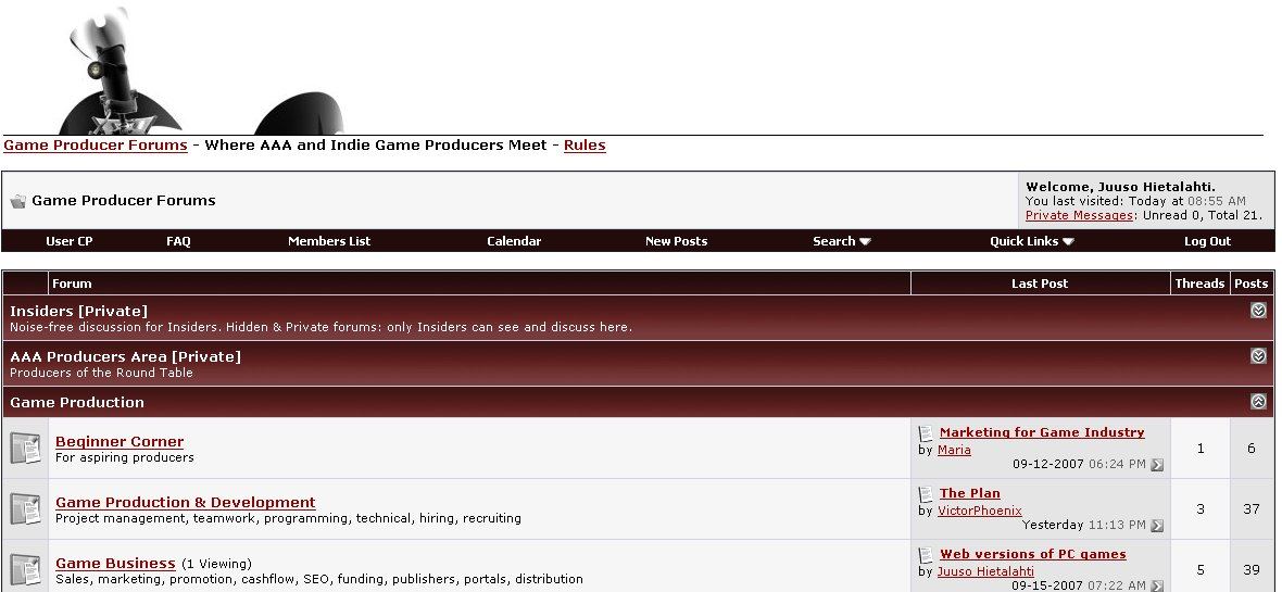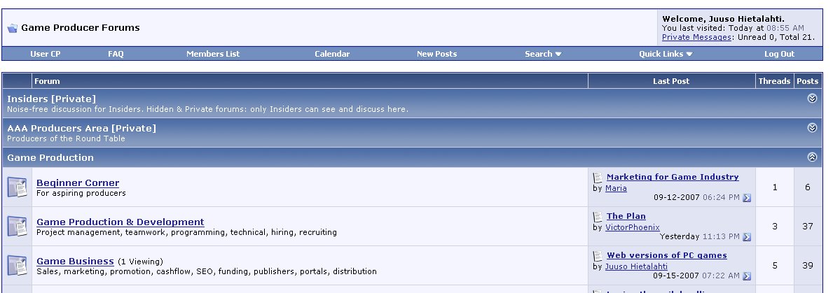 One week ago I introduced new game producer forums to the public and there's two new things I really learned in this process (which has just begun). I've managed to attract many people in just days and wanted to share couple of "secrets" I learned in this process. The bottom line is: if you want more forum members, check out these two tips #1 - UNIQUE VISUALS (are inexpensive to create) I read from different articles that told you gotta have a nice layout - and make forums look nice and all that stuff. I then started looking for vbulletin skins and asked for quotes... just to realize that it would cost hundreds of bucks to have a nice skin. It took me some time to realize that changing the skin is pretty simple thing to do. You just gotta have some basic HTML skills - PHP also helps - and some eye for visuals. I've attached two pictures (before/after) that show how my forums looked in the beginning (the default vbulletin blue) and how they look right now. Dumb persons guide to getting nice visuals (If you already know how to manipulate graphics, feel free to skip this part) I created a folder under vbulleting images (/theme/) or something and then copied all other default images there. This way I got all the default images in one place and could start editing them. I started editing images. I took my (free) pic software Gimp ( www.gimp.com ) and edited pretty much every picture the following way: 1) In Gimp I opened a file (for example "gradients/gradient_tcat.gif") and I chose "Image > Mode > Grayscale" to change a blue picture to gray. 2) Then I changed it back to RGB ("Image > Mode > RGP"), and applied a new color ("Tools > Colour tools > Colourise") 3) Then I could simply move the "Hue" bar to some direction to make the color change. I could choose Hue to be "100", click ok and it would change greenish. 4) Repeat with the rest of the images Doing this doesn't take long, and after all images are changed - then you can simply upload the files and change the skin from the vBulleting admin template manager (read vbulletin info for detailed info on how to do that). How to get a nice banner The other problem I had was the banner. I wanted something 3Dish, that would look good. I asked people (that's a fine way - and can work sometimes) but couldn't get the banner I wanted (tip: check out places like www.cgtalk.com or www.deviantart.com and ASK kindly from the artists. Don't just copy their work, but approach them and tell what you'd like to do. I've given permission from total strangers as long as I've linked back to them. Artists can be nice folks if you approach them properly ) Anyway, since I couldn't find the art - I chose to check out stock photo site (my favourite is www.dreamstime.com where you can get nice photos for FREE or at cost around $1). I got the pic, cropped it a bit (in GIMP) and uploaded to the net. Total time must have been like 30-60 minutes and $1 to the banner - when I realized that I could change the skin by myself. The attached before/after images show you that it can make a difference! After I changed the skin, I noticed more signups (might have been accident - and I don't have 100% solid proof, but I got the impression that the default vbulletin skin is quite boring and getting unique look might be important to some people). Naturally it's the content where it all eventually boils down: but good content in a nice looking place cannot be worse than just good content. #2 - THE SECOND TIP: FAME & GLAMOUR The second pretty witty (in my opinion) was to combine the forums launch with the fact that there were already some high profile forum members. To make a long story short, producers at some of the world's largest gaming companies have participated with me and done roundtable sessions where they answer questions from readers. Basically I wrote in my blog and told people that guys from [big company X], [big company Y] and also from [big company Z] are also forum members. I didn't tell that they would spend all of their time in the forums (since that is not the case, and I don't want to overpromise anything). I simply mentioned that these guys are contributing at the forums sometimes and might even answer to readers questions (that's true). When people see famous people - they wanna hang around them - or at least see a glimpse about them (why else do you think there zillion people waiting to touch some celebraties, eh?). And this is not just a "trick to get members". You gotta deliver what you promise. You have to get permission from people to use their names, and say how things really are. It's not a trick, but it's also nothing to be ashamed of (some people think this kind of stuff is "too much advertising"). It's your responsibility to tell if you have good content - there's no need to be ashamed of telling people if you can offer something valuable to them. I simply told that there are some big names participating at the forums - and I really recommend you guys to do the same.