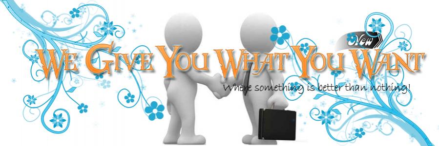 I need a 900x300 Logo design for my new site. This site is a free content site. We offer free online goodies. This is the Text I need... Text: We Give You What You Want! Small Text: Where something is better than nothing!