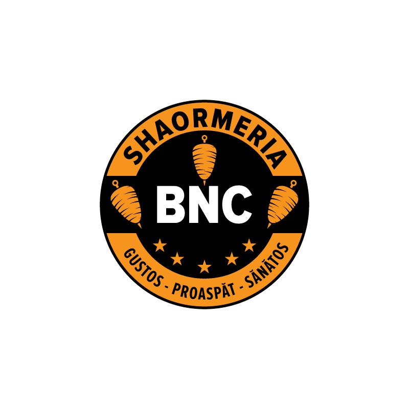 Hello talented people, I need a logo for my friend's kebab shop. NAME: SHAORMERIA BNC Other words to go on the logo at the bottom: GUSTOS - PROASPĂT - SĂNĂTOS (these are Romanian language characters) Other important requirements: my friend wants an image of the kebab/shawarma to appear in three places just like in his examples below. Please see the attached three images Also at the bottom he wants to have ***** stars (five stars) Shape of the logo: circle (as per his examples below) Colours: please use a combination of orange (predominant colour) black and white Style: "serious" and modern, not a cartoonish one Any questions please ask. Winner gets $25 via paypal NO PM ENTRIES Please post here on the thread