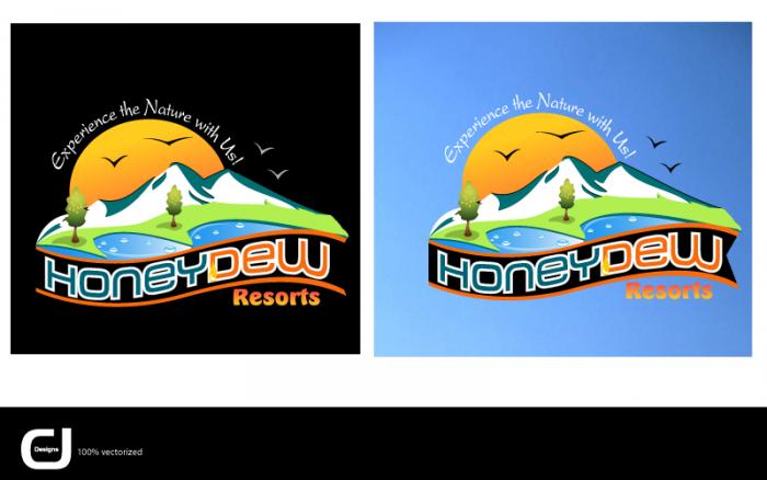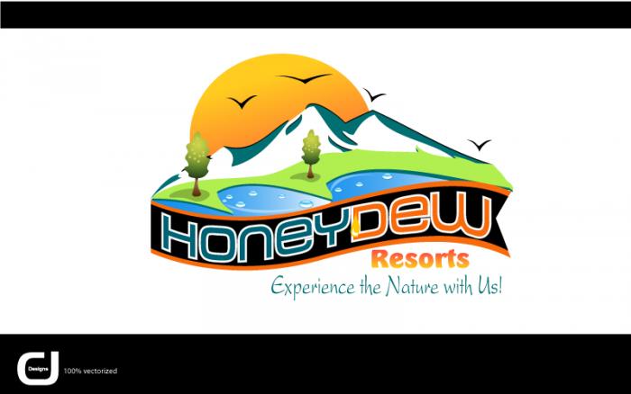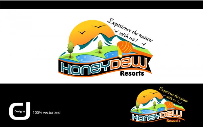 Good work - keep this version try to incorporate these changes let the water be sea blue whole logo should be more sharp add the tag line Experience the nature with us ! the resorts font is not impressive add the honey comb and drops in your previous logo in this try to incorporate it here too some where on the text lets see how it comes out font colours are not good