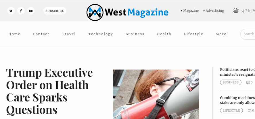 Site URL: westmagazine - n e t Logo Text: West Magazine pls use color #0089D8 somewhere Pls show me logo preview on site