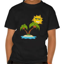 Hi. This a print for a small kids shirt. Colourful and bright colours. The shirt says: TVA Baby Content: Baby sitting down (can't tell if it's a boy or girl), giving a shaka (gesture with the hands, I'll attach image of shaka) with palm tree's in the back ground.