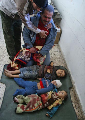 According to the news where i got the photo above, 3 Hamas militans(!) killed by Israel. See the photo, The dead militans father is crying next to his childrens body.