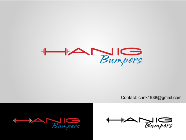Very nice, bumpers are all the same size so the blue logo wont work, good idea having 2 plates on each side of the bar to make it clearer that it's a bar with weights, it has to be molded from rubber so I will check the minimum mm gap between lines, could you try one where the HANG and the BUMPERS under it are the same font and maybe the same width?