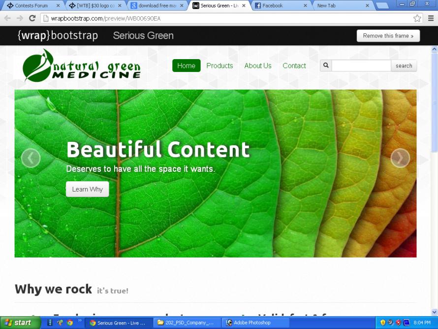 This is another contest I'm looking to get done. The business name: Natural Green Medicine Please incorporate the marijuana leaf Example: https://www.google.com/search?hl=en...urce=og&sa=N&tab=wi&ei=SKX3UMz2HKvNigKhp4DIDA The logo should match this website: http://wrapbootstrap.com/preview/WB00690EA Thanks.