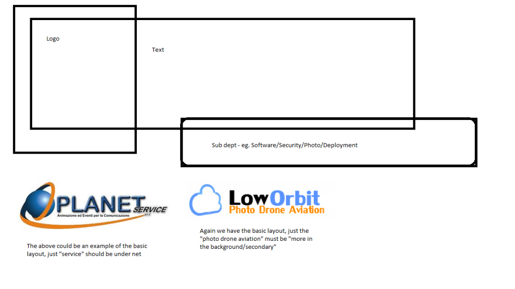 Hi guys. Looking for a company logo here, the company name will either be HighOrbit.dk or LowOrbit.dk not quite sure yet so it must be easy to change. The purpose of the company will mainly be to take airial photos with drones, but it would be neat if the logo is not "locked" to one activity eg, we might want to offer other technical services (like eg. software/security). I have the following comments; 1. Must be simple (a guide could be that it must be so simple I could draw it in hand) but still not be too much clipart'y 2. Not too many colors 3. Should be designed in a way so it can be used as watermark for video (so the borders may need to be designed with this in mind) 4. Background will mainly be light/white - but again with the above regarding watermarking in mind, also if the logo could be used on darker backgrounds this would be nice. 5. I am thinking mostly light blue (thinking sky) but gray green black may also be suitable for colors, red could also be a possibility (anyway think sky, heaven, planet) 6. I am thinking that perhaps there should be the option to add a "sub title" like eg. Software/Security/Photo/Video to the logo (If I decide to use it in different contexts) If I can, I will upload a few that I "like" logos for inspiration. Design guide, I think a logo (leftmost) followed by the company name in large letters. The logo will be used mainly for the new website based on this theme; http://www.kriesi.at/themedemo/?theme=enfold but should also be easy to use on business cards. Must be your own work, I must be granted full rights to the winning logo, must be delivered in Photoshop format so I can edit it. I will try to comment at least once every 24 h, running time will end on noon CET July 18th 2014, payment via PayPal. Ps. this is my first time on this site, so please bear with me if I somehow am unclear or overstep some rules.. Thanks for your time Michael