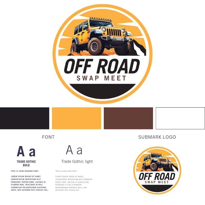 Looking for a logo for my company, name is "Off Road Swap Meet" This is a Buy/Sell/Trade business for off road vehicles/parts etc. Open to ideas you all have. Will need a logo for website header and also Social Media etc. Thank you. Will choose winners with in about 48 hours depending on amount of entries.