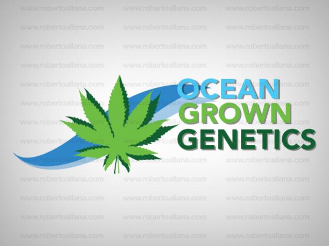 INSPIRATION: The logo is simplistic, the cannabis leaves represent....cannabis. The wave represents the ocean and is also representing genetics through looking like DNA