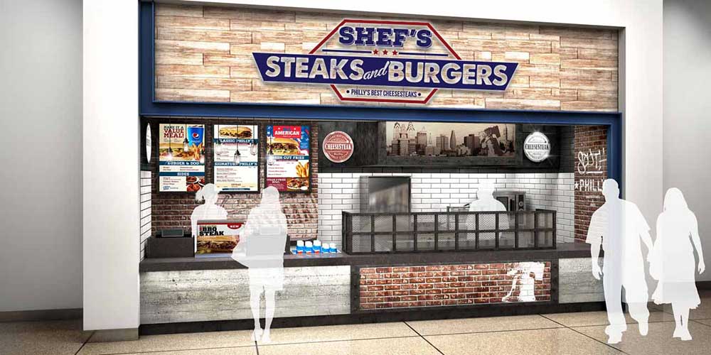 My partner wants to see if you can make Shef's smaller and Steaks and Burgers bigger. I think it is fine the way it is but he is concerned about people seeing it on the sign. Can you also do a sign mockup?