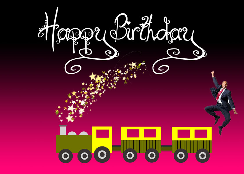 Hey friends, I am back again looking to create a Birthday card. The competition will run 48 hours or until the customer is satisfied. Winner of the contest will receive $25 upon the decision being made that their submission is best. After completing the card they will receive another $40 dollars. The total prize money for the winner will total $50. No stock footage No stealing of art All submissions must be made IN THE THREAD. Any communication made outside of the thread will be made public. Below is our example of the main art the client wants on the card. SUBMISSIONS- Must include a steam engine train that has the man with the tie jumping onto the back dressed up as a hobo. Project Details (winner only): Create a card similar to examples that has 6 employees photoshopped onto the train with creative flair. Necessary and available files will be provided to the winner.
