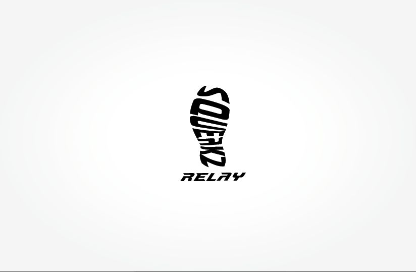 Follow the text in shoe tread idea. A good look would be for the text to look integrated as the shoe tread, but stand out at the same time. Think about one shoe for the Squeakz logo, with the matching shoe able to state 'run' 'events' or 'relay'