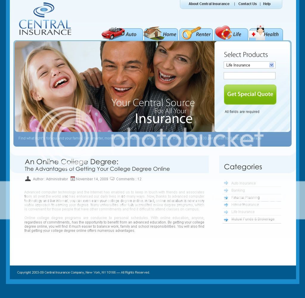 $65 One Page Design Contest for CentralInsurance.org (Uncoded - 48 hours)