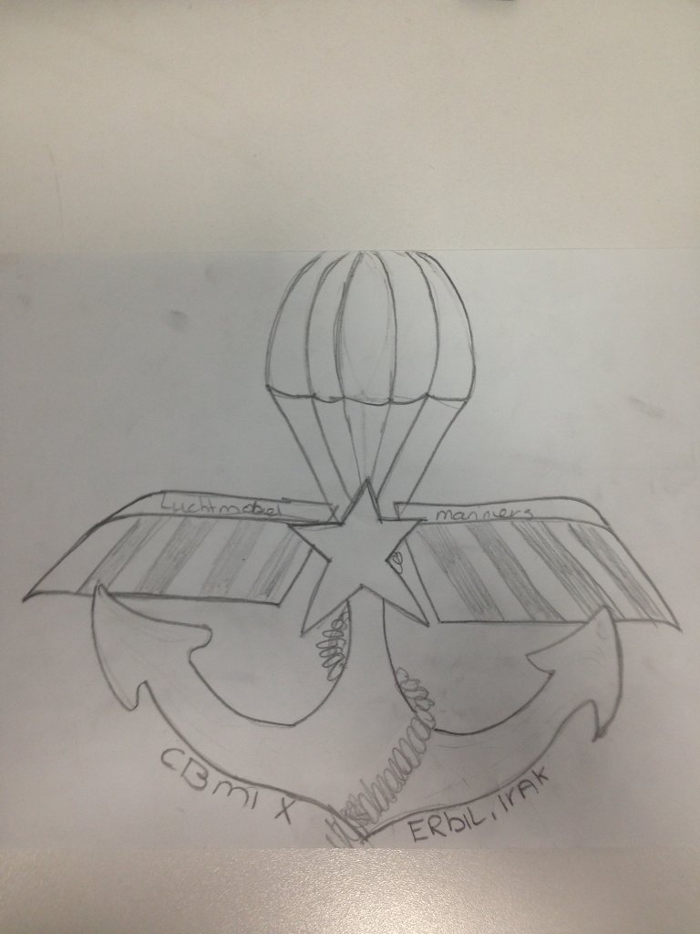 Hello all, I am currently in Iraq for a mission. we want to get a logo that we can print on our tshirt as a reminder to the mission. we have an example of what we would like in the appendix The logo must be sized for a tshirt. The logo is a combination of our airborn(the wings) en our marns(anchor) unit. Color: Black outline I hope for many entries even if the price is low