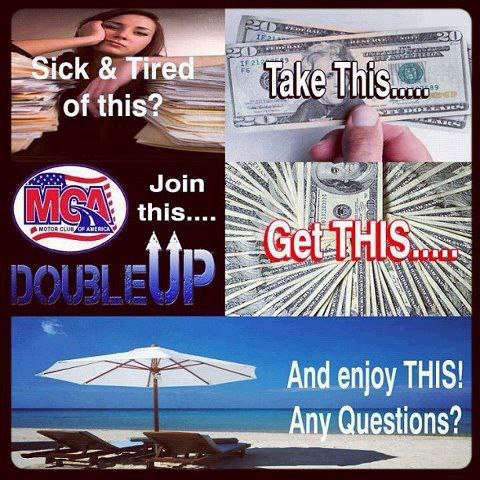 I just thought I'd post this new affiliate program that I found that is seriously making me money and all it takes is just 40 bucks and you get paid 80 bucks per referral and im banking about 1k a week and its growing... This program is called motor club of america check out the site and watch the video: http://www.MCAAutoGroup.com The MCA associate referral program is by far the most lucrative compensation plan within the auto club membership benefits industry. Motor Club of America does NOT charge anyone a fee in order to become an Associate Partner within the MCA associate referral program, and this in itself indicates that the business model utilized by the Motor Club of America, and TVC is legitimate. When a prospective MCA member purchases a Total Security Member Benefits package they simply prepay for 2 months at $19.95 which rounded off is only $40 and then the cost for retaining the Total Security Member Benefits package is only $19.95 per month thereafter. This fact should also indicate that there are NO cost associated with becoming an MCA referral business associate. As far as the "hype" factor is concerned the Motor Club of America in conjunction with TVC has put together a VERY lucrative compensation plan that doubles each member associate referrer payout each week. When a Motor Club of America member shares the MCA membership benefits package with anyone, Motor Club of America will pay the associate member double. Let's say that an MCA member shares the member benefits package with someone, and that person decides to take advantage of the MCA package, and purchases a Motor Club of America "Total Security Plan" by simply prepaying for two months at $40 the MCA member who referred that person to the program will receive a check from MCA for $80 in the week following either by UPS or direct deposit. HYPE? No... MCA has built up a lot of good "buzz" since this is the only compensation plan within the industry. You may be asking yourself, how MCA can offer such an incredible compensation pan without going out of business, and the answer is this... Motor Club of America has been in business for 86 years since 1926 which means that the company is well respected, trusted, and managed extremely well, and they have done their homework in knowing that members retain their memberships for well over 2 months due to the array of benefits being offered at an affordable price ($19.95 per month) that fits everyone's budget. In concluding this PR the fact is that Motor Club of America is NOT "hype", and it's definitely NOT a scam. A company with the longevity as the Motor Club of America has earned it's trusted name on quality, affordability, hard work, and coming through for it's members for close to 100 years. Get your "Motor Club of America" MCA Total Security Plan, and double your money by next week by simply sharing your membership benefits with everyone you come in contact with online, and off by visiting the link below:http://MCAAutoGroup.com