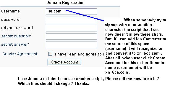 I want to add Idn A Converter ( I found it here phpclasses org idna converter ) To registration page. My English is not good enough so I explained it with a photo. Please take a look at a sec.