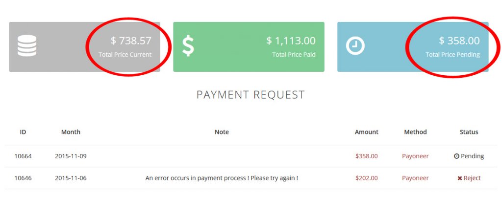 Now pay this one. It was sent earlier then above. On 9th of November! I'm waiting for $1065 because you didn't pay on 10th, didn't pay on 20th, didn't respond on 5 skype messages, 3 emails and ticket support question. I was unable to withdraw current price until you pay pending amount and you didn't transfer it to pending balance on (before) each missed payment date. You have to pay exactly on payment date you specify or at least inform publishers about any delays! I was even tried to help you if you're in trouble (read Skype), but you didn't respond.