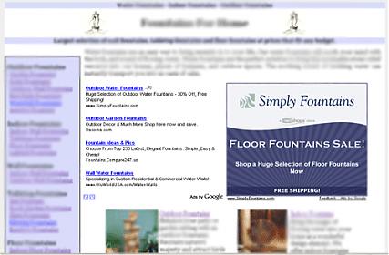 Hi I wanted to share my little success I have an affiliate site selling fountains. It wasnt making any money, even though I've sent so many visitors to a merchant. Not sure if its bad pre-selling or bad prices, but I decided to remove all links to the merchant, now there is only little content and Adsense ads.( I removed all products and descriptions that wasnt unique anyway) Next day I've made $1.6! Since then this site makes $1/day on average and I didnt really start backlinks building yet! And I can tell you that I get pretty good CTR! Cant tell you exact number according to TOS, but here is how my page looks like right now. So... If your affiliate site doesnt make money - switch to Adsense! I'm glad I did Now I'm gonna start working on link building to increase traffic and revenue! Any comments, questions, feel free to post or pm me.