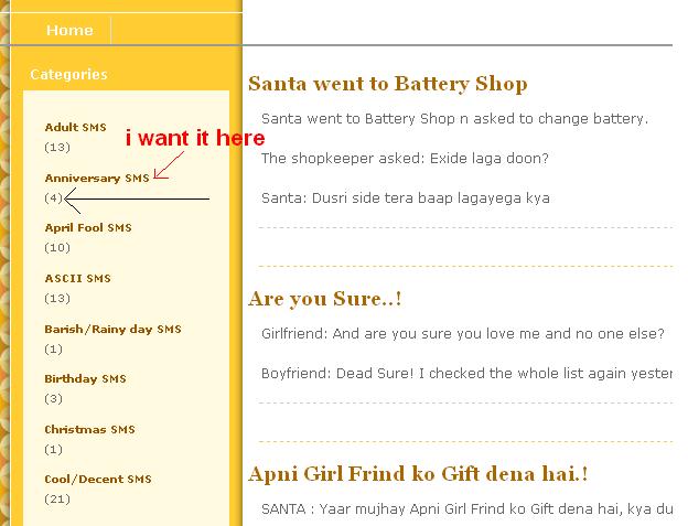 Anyone edit this Little Problem for Me (WORDPRESS PROBLEM) Check this Theme: When i am Using this theme and enabling " Show Post COunt" (to show post counts with categories) , the Post counts are showing under Category's Name, I want this count to be with Category name how can i do this Picture Download Link: