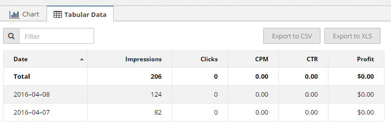 I tried to use this ad network before. But I was dissatisfied. Some time ago, I decided to try again. Perhaps something has changed for the better. But no. It is very likely that they will not count your impressions and clicks. I used Direct link format, which they recommend as a very effective. However, I noticed that someone clicks on this link are not included in the report. To test, I used my counter. During the first half of the day, on my counter 214 clicks. I open the Statistics Propeller and see zero. And so: few advertising, very low cost of advertising, not all clicks are considered. This is my experience.