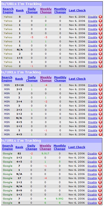 Well lets just say those are the main, most desirable keywords/phrases for the site then . Because they are! But I do get your point. These phrases are the phrases most commonly used to reach this particular niche. Some are even broader and I am still hitting 1. The first listing in each table is the "Holy Grail" Phrase. I guess what I don't understand is that I have another site that ranks 10 (page 1) in Google for the "Holy Grail" Phrase and this one doesn't. It's way out there. . . I have been pretty lucky with my SERPS in general though.