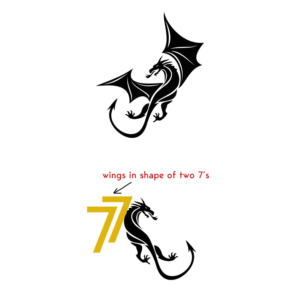 So far everything looks like a dragon was taken from elsewhere and some 7s were laid on top or next to it. I'm looking for an artist that can create the wings in the shape of 7s. I think I'm in the wrong place. I'm going to end this contest. If you are an ARTIST and think you can come up with something, please DM me.