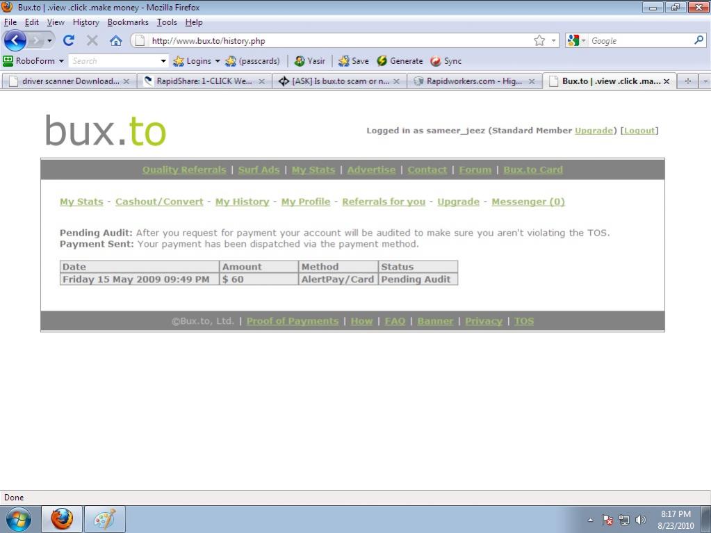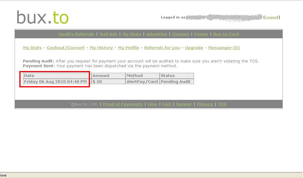Hi, I am a member of Bux.to from last 2 years and I have been working daily on Bux.to. My balance is $82. I have never got any payment from them. I have requested for $50 payout. If they pay me they are genuine else they are a big scam. Proof: See the attachment.
