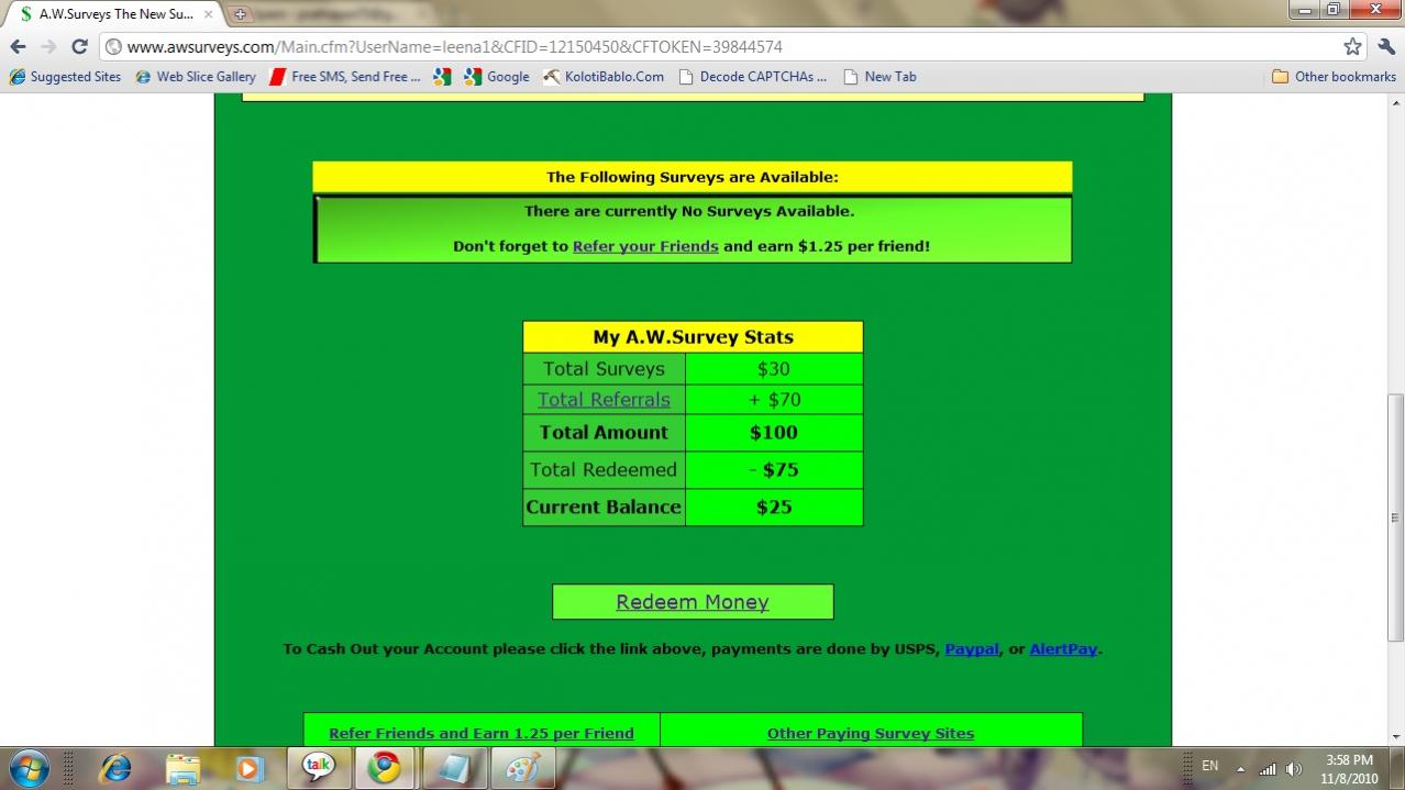 Is A.w surveys .com is scam site? Any boody has experiance on awsurvys .com payment proofs?? im attaching the reedem my amount , but not yet the money Thanks,