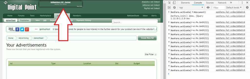 Here it is. Idk what that Xenforo thing is. I talked to my developers and they informed me that there is no message or error. JS successfully loaded. You can also see that banner is not loaded. So, what's next?