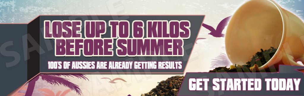 Hey guys, Need a banner for our website. Its a sales banner so we need to make the buyers need to purchase our tea. The angle is to make them look amazing for summer. Big Text: Lose up to 6 kilos before summer Smaller Text: 100's of Aussies are already getting results Image: Up to you, but thinking attractive girl at the beach. CTA: Get started today You can see the current banners on our site at slimmingtea.com.au Dimensions: 1170 x 370 px I want it bright and to catch the eye. Payment: $30 Contest will run for 48 hours Payment via paypal Good luck