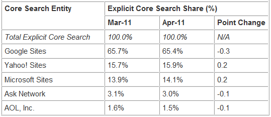 Microsoft's Bing eked out 14.1 percent of all searches in the U.S. in April. http://news.cnet.com/8301-1023_3-20062177-93.html