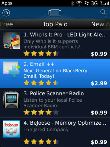 Soon after being featured under general category on AppWorld, Email++ became one of the top paid app. However, it was not just because of being featured, which of course made it visible to AppWorld users. People really liked Email++ because of its unique and innovative way of making the additional features available through a toolbar on view/compose screen of native BB email client. People also appreciated the prompt and timely responses to support email as indicated in user reviews. Because the mobile apps are usually very small in nature, sometimes we do not give importance to support users after purchase. However, we should remember that it is the users and their acceptance that make an app successful or failure. This app is currently on SALE for $2.99 (regular price $4.99). Email++ is currently among the top 3 paid apps for smartphones on AppWorld! http://appworld.blackberry.com/webstore/toppaid/category/116/