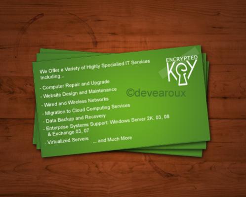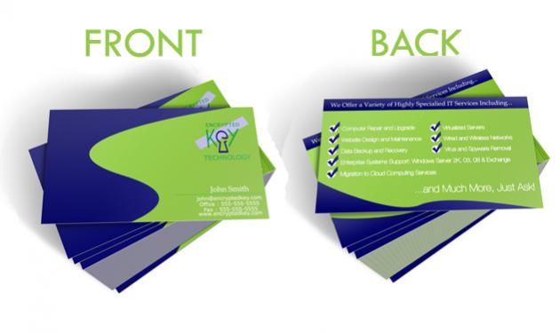 Hey, I've got two potential business card designs. Which would you recommend and why? If I approached you as an IT consulting firm and you were a business which card would you be more impressed by? Bcard1 attachment has both front and back designs for card #1. Bcard2a is the front design for #2. Bcard2b is the back design for #2. Thanks for the help!