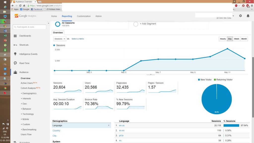 Hi guys, I am new to this forum, I am helping out my best friend, [ having said this I have some stake in this, who is kidding not many work FOR FREE ] HE HAS A website [ specific niche related] a new website, He has invested in SEo, traffic, Only this is that being a new website [ as opposed to a seasoned one [ say 9 - 12 months plus] so the blog content is limited [5-15 pages] Mix between manually posting [ if he or myself are free as well as auto blog post ( so atleast one new blog is posted each day ] total new blogs posted [ human + 1 auto = 5 blogs each day] Can you please SUGGEST A GOOD PPC ADV. ALONG WITH GOOGLE ADSENSE [ AWAITING APPROVAL FROM GOOGLE] so that he and I can make money [ so atleast we can break even for the investments made] below is a screen capture of the Google Analytics, NOTE WEBSITE AND PERSONAL INFORMATION HAS BEEN WITHHELD. [as it is linked to his account] [ note the website has been on around 7 days ago.