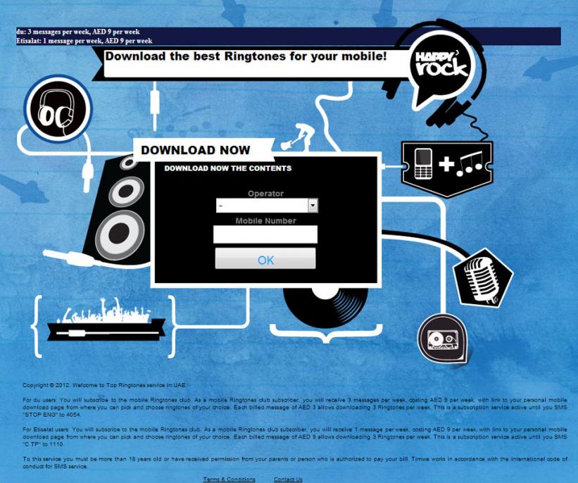 Hi, I live in the internet. Recently I noticed the spread of the websites which send a ring tune to the mobile phone and charge for that ring tune by deducting an amount from the mobile phone balance (Your sim/mobile operator balance). The large number of these websites made me believe that there is a website, company, or whatever which made having such a website that easy. I attached and image about the type of website I am looking for. I need to know what service, company, software can help me with this. Any info may help