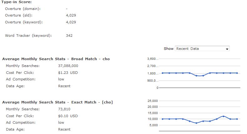 Average Monthly Search Stats - Exact Match - [cho]