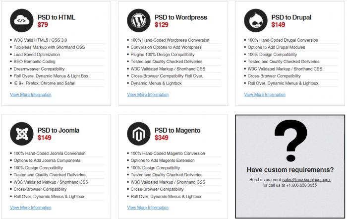 Markupcloud is amongst the well recognized providers of Markup conversion and theming services. We believe in delivering fast and high quality conversion with 100% satisfaction guarantee. For more details contact us at +1.606.658.0055 or email us at . You can also contact us via form online( http://www.markupcloud.com/contact )