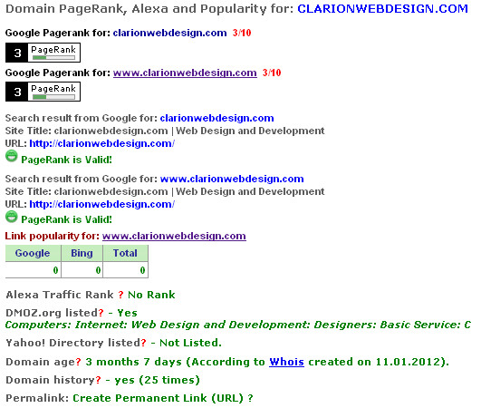 Selling CLARIONWEBDESIGN.COM for sale || Valid PR3, DMO* Listed