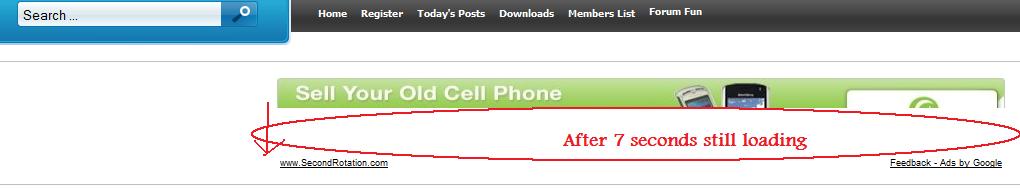 Your image adsense ads were loading slow, but the time they did, I already would be half way down the page and probably hitting the back button or something else. I think all the other graphics were hogging the bandwidth. You have alot of images on that homepage. edit, I cleared my cache and refreshed the page and the adsense image ads loaded slow again. yep Oh iH ave 60/kbs download speed, which is fairly okay. I can watch youtube vids no prob.. If you wanted to avoid this you should optimize any images with something like Adobe Fireworks before putting them on the site. Sometimes jpeg might still look good with more compression, or sometimes some images might wiegh less as a .gif then a jpeg etc.