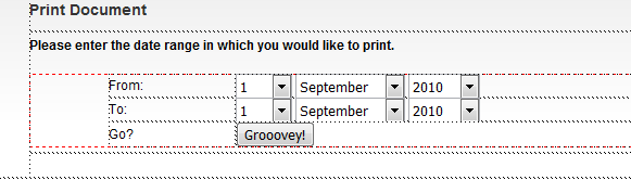Hi , You did not mentioned if you use POST or GET or your field names but I will be showing you a general solution that you can addapt to your needs. lets assume your From date fields have the following names : f_day,f_month,f_year ( and that they all are numeric (f_month select value is date("n",...)) , same for To fields : t_dat,t_month,t_year. The code would be : $from = mktime(0,0,0,$_POST['f_month'],$_POST['f_day'],$_POST['f_year']); $to = mktime(0,0,0,$_POST['t_month'],$_POST['t_day'],$_POST['t_year']); $results_search = mysql_query("SELECT * FROM table WHERE date_field BETWEEN '".date("Y-m-d",$from)."' AND '".date("Y-m-d",$to)."'"); if(mysql_num_rows($result_search) > 0) { //print results } else { echo 'No results found !'; } PHP: Hope that clears things up.