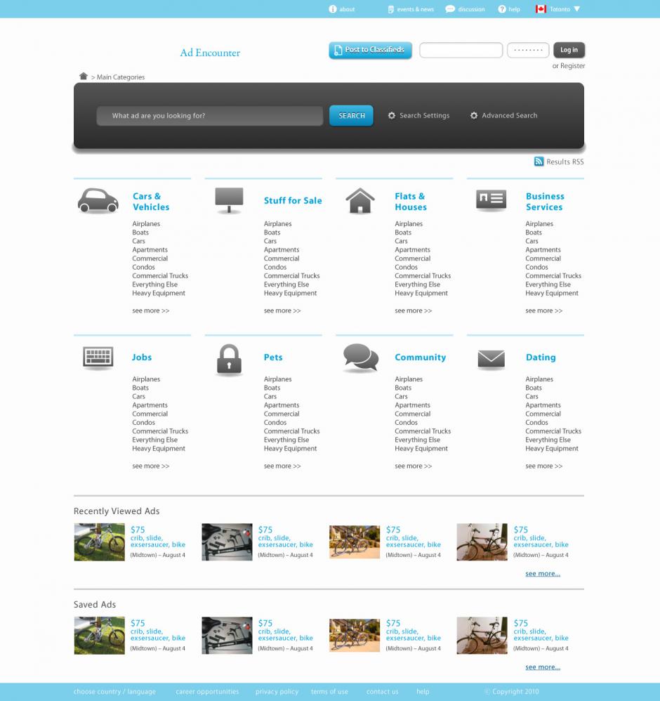 Current design: http://goodsandservices.ca - there can be also seen functionality. All details about website's design attached with wireframes. Design: Please take a look at the attached file. The design i attached is fully corresponds what we want for Main page and Categories page. All needed to be done is to adapt this classifieds web site to our business categories. Please let me know if the designer will need some clarifications on that. Structure: Please take a look at www.scoot.co.uk. The solution within the inside of an actual directory is great. You are able to see all the companies at once and by clicking on the company’s gallery let’s say it expends. I will try to make a wire frame to attach. Also Filter option is great solution, read in the following points in more details. Visitors can fill out a designed form to find businesses within a certain mile radius by location. The user chooses the categories and fills in their contact information. Logo should be definitely redesigned and be interesting creative and unique. Category list on main page should show how many companies are registered and if any were added during 1 day to put it there somehow. Something like “Business Services " (32) +2 (a day) Search should be done only by keyword and the city (postal code). After search result return it should show in what category keyword was found with the ability to narrow the search by keyword in category. (Look ebay search results for reference) To make a menu Static (Kijiji) with the City Option as in www.kijiji.ca as well. Menu should consist of: Home( Categories), Add your business for free, My account, About us, etc. See wire frame attached as well. City (Toronto) will be shown by default, and can be changed any time. In addition, location can be narrowed or extended to other small cities, regions or provinces (filter). Compare Memberships page should be easier to read example: http://www.cityshopper.ca/pricing.php On the header of the page should be “Featured listingsâ€, which will rotate periodically, and filter down when a user goes to specific category. For example in “property category†there would be only property related featured listings on the header. Or the featured listings will be highlighted and at the top, and below them there will be free listings. I like the idea of filter http://www.scoot.co.uk/find/accountants-in-uk on the right hand side. With the filter user can change whether he/she wants to see businesses which could be sorted by Postal code/featured listings/reviews/specials/gallery/pdf (price list) to make search easier. I’d like to implement that idea on goodsandservices too. There should be some kind of a mark (updated within last 24 hours) showing that there are some changes in the business’s page (price list added, more pictures added, etc.) A very good example in the member’s page structure is: http://www.scoot.co.uk/find/accounting-activities-primarily-bookkeeping-in-uk. In addition to the page as it is now on goodsandservices there should be tabs on the top such as “Servicesâ€, “Galleryâ€, “Reviewsâ€, “Pricesâ€, “specialsâ€, “hoursâ€, and with ability to add additional tabs as needed as well as being able to filter pages for example pages with “paid referrals†and “special offers†only, such as http://www.scoot.co.uk/find/accounting-activities-primarily-bookkeeping-in-uk Also there should be Referral Fee added to the table underneath of “Book mark and share†$$$, by clicking on that client will see how much the business owner is ready to pay for the referral in a form of cash or gift certificate if business owner chooses to have this option on his/her page. If business owner is ready to pay referral fee than there should be a button refer a friend. Review feature should be more precise, rate few things for example “valueâ€, “priceâ€, “serviceâ€, “overall experience†etc. with the 5 stars. I liked the review feature at www.scoot.co.uk