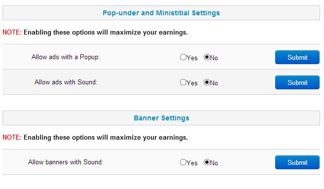 Honestly know what you're getting into with Adversal. I only have a few banner & rectangle ads on my website and I made sure to disable every option that would interfere with the user experience. As you can see, Note that I'm only using banners and rectangle display ads. No popunders or anything. I thought all was good, despite the low CPM rates. But I was completely unaware of one thing. Just found out from my visitors that it redirects every SINGLE page on a mobile phone via linkbucks. EVERY LINK, EVERY POST. This is outrageous and highly unprofessional. Not to mention the eCPM I was getting was $0.06 at best. So basically, this is fraud. Don't use them unless you wanna bombard your visitors with stupid redirects on mobile phones for chump change. I even had a couple instances when I saw a popup upon page load on my desktop - when I have completely disabled all that! It was only twice but still! It shouldn't even happen once! I'm sorry. I'm done here. If anyone knows any CLEAN advertising agencies that don't use shady tactics, please let me know.