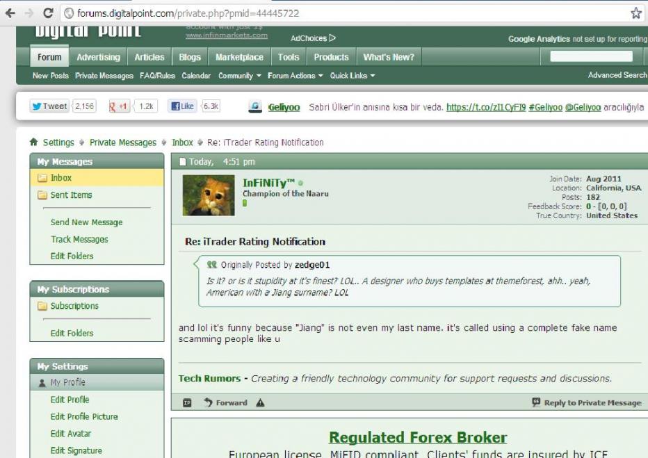 One member here who can't fix a PHP problem on his website scammed me for $10 worth of work. LOL! He also say that he is an american and he hire slaves to fix his problem because he's too lazy to solve it. His name in Google Plus is Edward Jiang but I found one thread from here in DP that he's selling a VB license with a different name on it. Watch out guys! Also, After I've finished the work from him, he discussed another work for me and he told me that it will be worth a hundred $'s. While discussing, he got disconnected and I haven't heard from him since then. After two days, he came back and left me a negative feedback, he told me that he was sleeping that's why he never answered my Pm's. Well, you don't just ran and go to sleep without paying someone who did some work for you, right?! LOL! Here's to you motherfucking scammer!